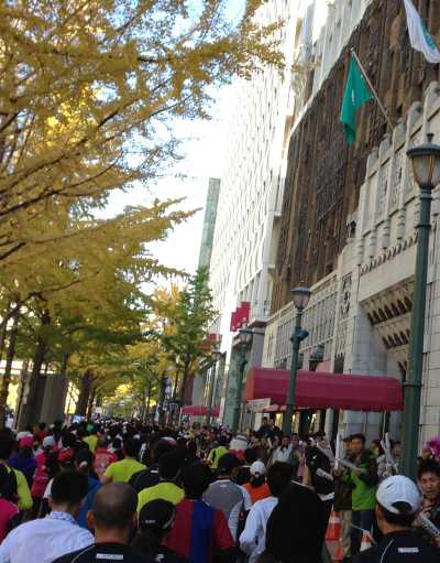 - 大阪マラソンの10km地点。大阪中央公会堂から大阪ドーム手前までの混雑状況